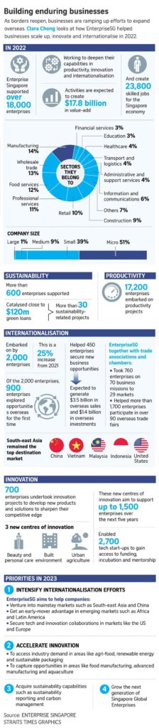 Moving forward, in 2023, EnterpriseSG said it will continue to intensify internationalisation efforts to help enterprises strengthen their supply chains and achieve scale, as well as diversify their business in overseas markets.