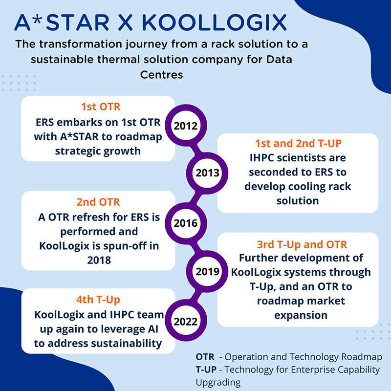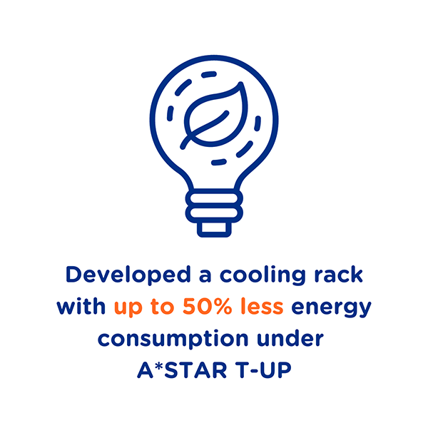 In fact, KoolLogix has had a long-standing collaboration with A*STAR since 2013, where their parent company ERS participated in A*STAR’s Operational Technology Roadmap (OTR) to grow its business. Then, under their first T-Up project, scientists from A*STAR’s Institute of High Performance Computing (IHPC) were seconded to find ways to improve and design their own proprietary data centre cooling system.